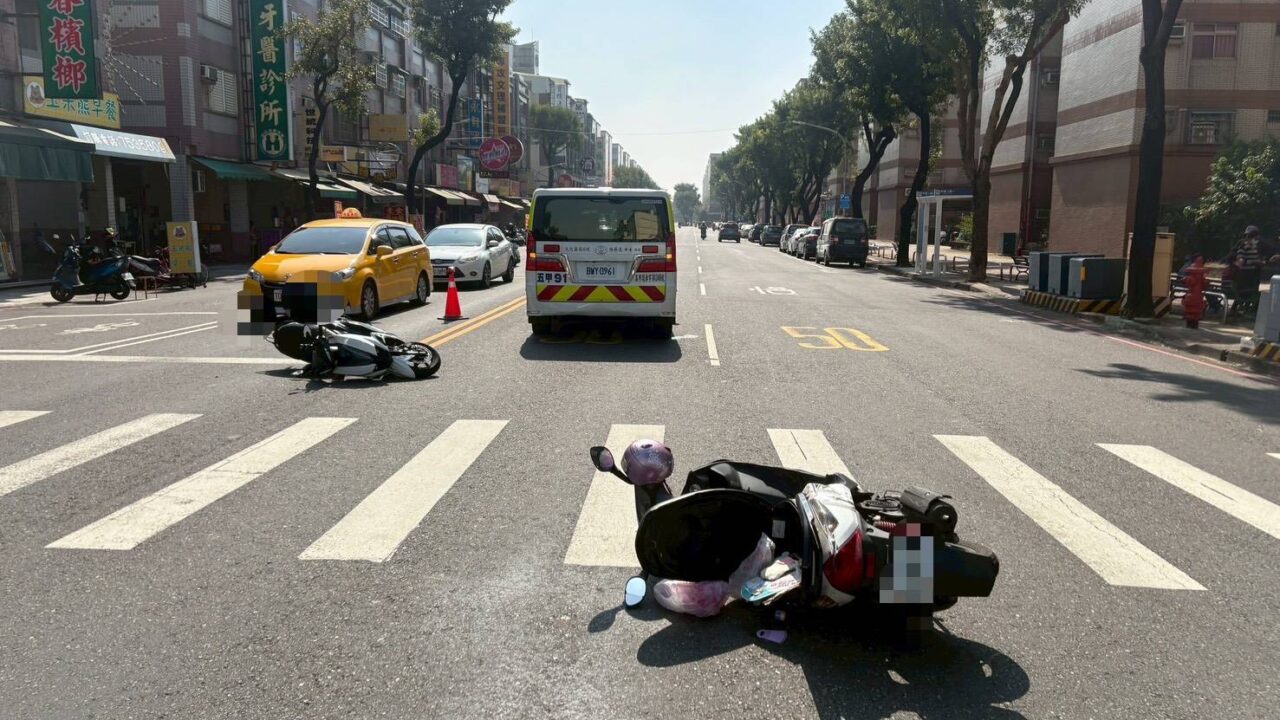 鳳山區中崙二路與中崙路口兩台普重機車擦撞 2傷自行就醫