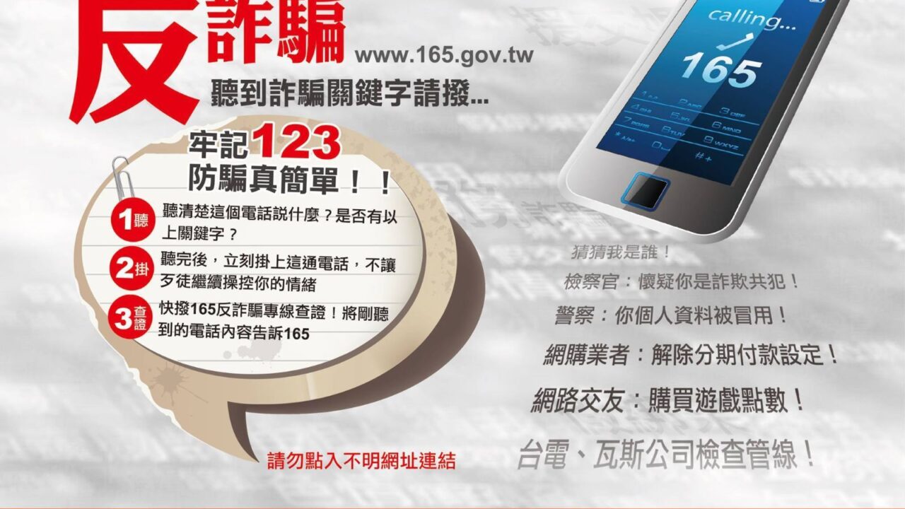 反詐騙宣導,請民眾提高警覺,注意來電顯示及詐騙話術!