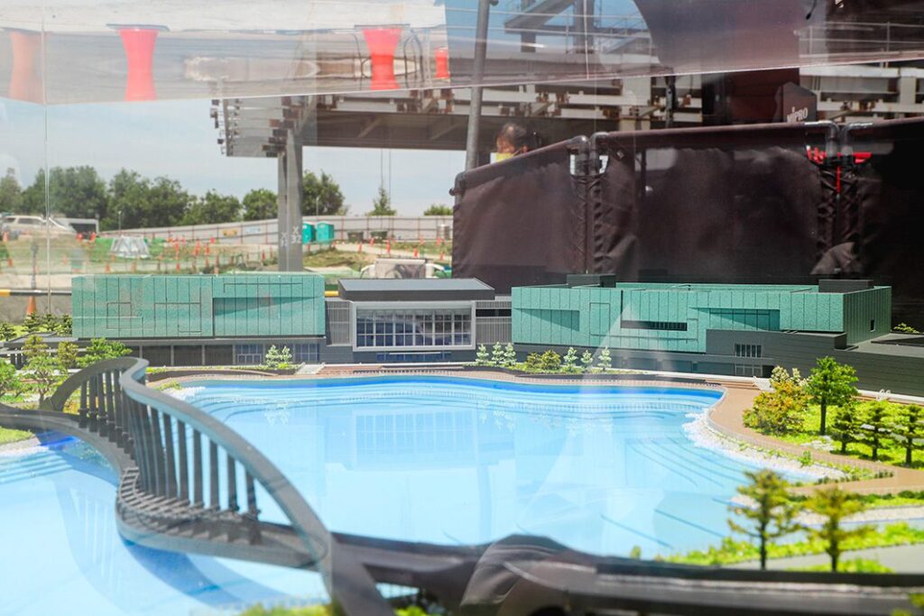 蕭宗煌也說,民眾在二館裡可透過不同觀景台欣賞文物修復,而南院被眾人詬病的動線及停車問題也在今年改善,目前已修繕入口意象,新建太陽能停車場,一館二館之間將設立雨棚式連廊與咖啡廳,民眾可坐下觀賞博物館建築、湖上風光。