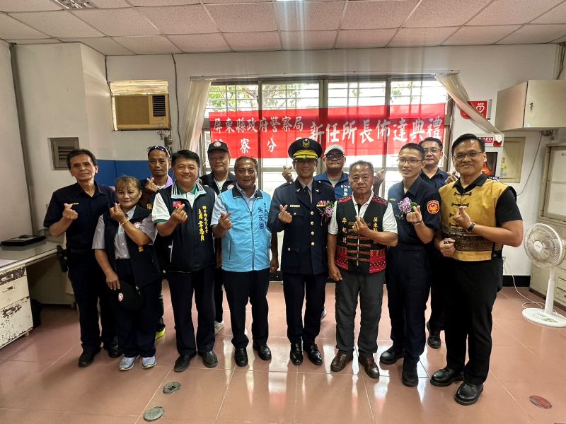 ▼布達儀式由分局長盧恒隆親自主持交接布達儀式,在獅子鄉各級民意代表、地方仕紳及各民力團隊等到場觀禮下,典禮在掌聲中圓滿結束。(圖/屏東縣政府警察局枋寮分局)