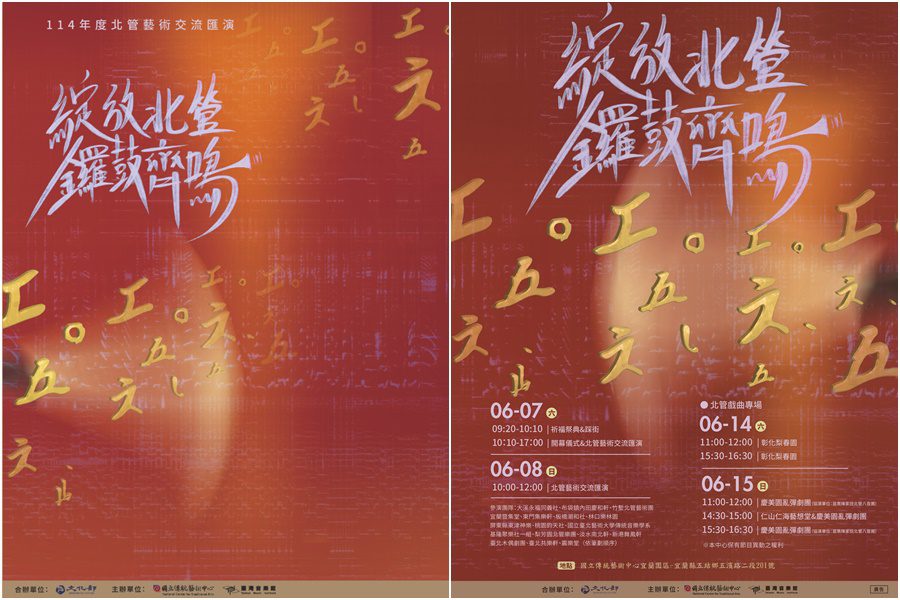 由國立傳統藝術中心臺灣音樂館主辦的「《綻放北管.鑼鼓齊鳴》-114年度北管藝術交流匯演」,將於6月7日、8日與6月14日、15日在傳藝中心宜蘭園區盛大舉行,邀集全臺20組優秀團隊共同譜出北管藝術的新篇章。歡迎民眾入園體驗北管的熱鬧、深情與魅力!