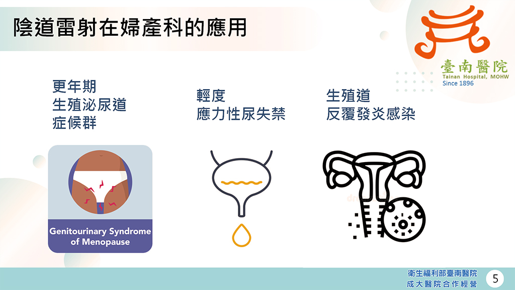 【記者吳玉惠/臺南報導】 提到陰道雷射(Vaginal Laser Therapy),大家可能都會馬上聯想到醫學美容。但是其實從2010年代起,陰道雷射這項技術就開始被應用在治療更年期生殖泌尿症候群(genitourinary sydrome of menopause,GSM)),作為傳統療法之外的替代療法。