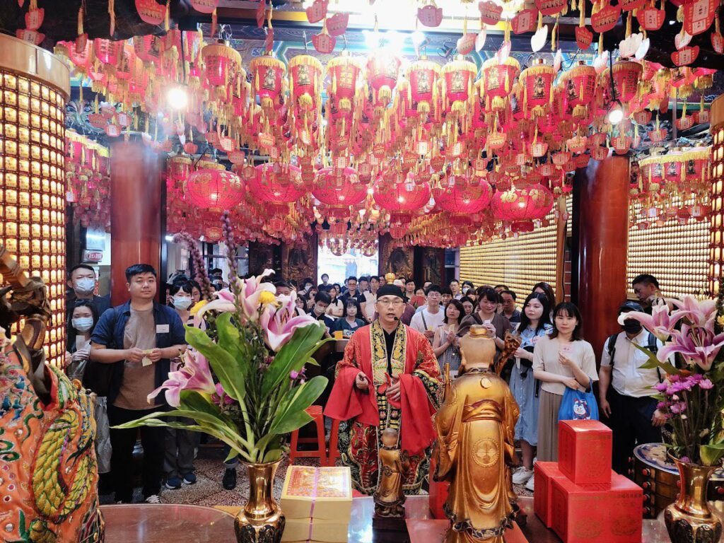 活動首站來到松山在地香火鼎盛的「松山霞海城隍廟」,由月老星君見證,參加者誠心祈求好姻緣。城隍廟主委沈錫祺、松山區區長鄭朝元、松山區慈祐里李祖民里長等貴賓親臨現場,為單身民眾送上祝福與加持,更安排「祈緣添財」儀式,祈求愛情與事業雙豐收。現場每位參加者還獲贈象徵美好姻緣的月老福袋、紅線、甜糖果及招財錢母等伴手禮,祝福大家早日遇見對的人!