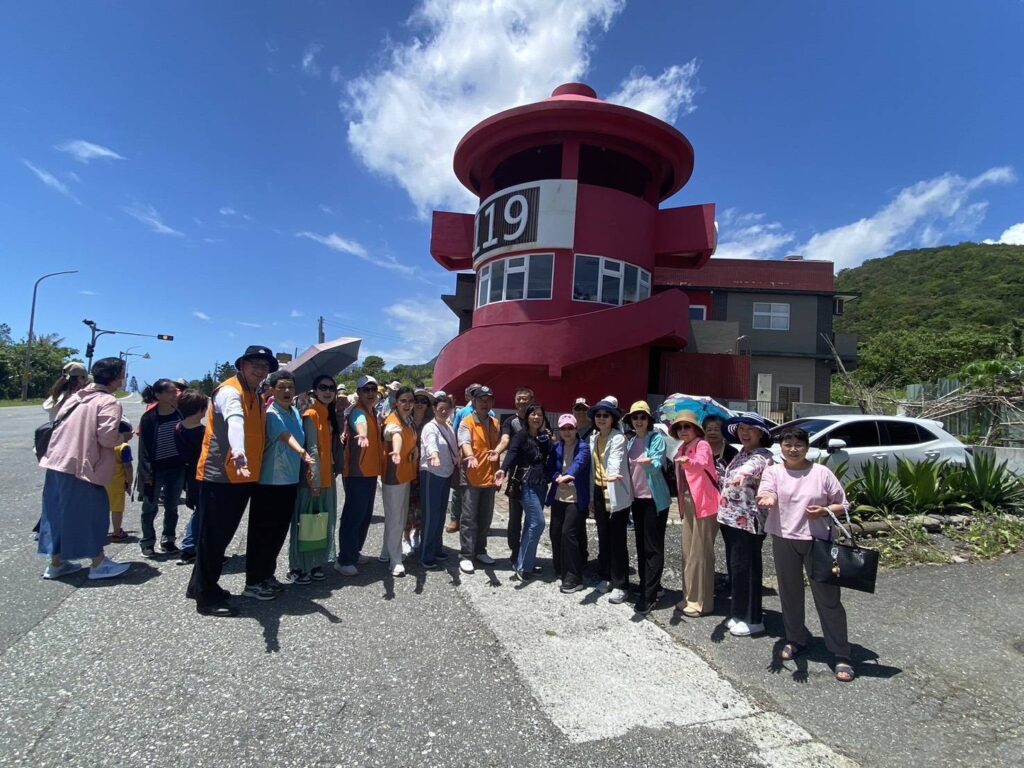 ▲花蓮縣安徽同鄉會成員在119消防栓造型的豐濱消防分隊前合影。(圖/花蓮縣安徽同鄉提供,下同)