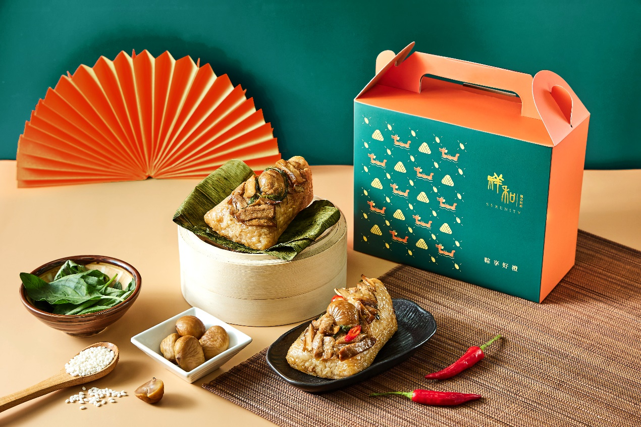 今年,「祥和蔬食」更首度推出端午限定的精美「粽享好禮」禮盒組。禮盒設計概念取自龍舟、圓糯米等元素,並採用代表豐收與美食象徵的橘色,以及相襯自然、健康、永續生活的綠色,用以傳遞對大地及斯人的感恩心意!禮盒內容包含了原味三杯素粽兩入與辣味三杯素粽兩入,每顆粽子的份量重達200公克,足夠一餐的份量。一套售價580元,滿足美味、美觀與兼顧過節送禮需求,誠意滿滿。