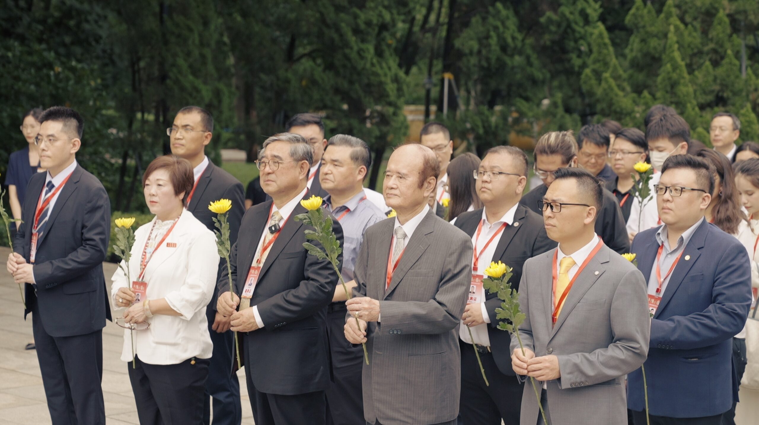據悉,吳成典主席一行是前往廣州參加第四屆「攜手圓夢—兩岸同胞交流研討活動」,28日下午先至黃花崗烈士墓拜謁,透過現場解說人員並一一講解烈士墓的建築、國父孫中山先生手書的「浩氣長存」等墨寶,並在烈士墓前,現場人員向每人發放菊花,並一一向烈士致敬。