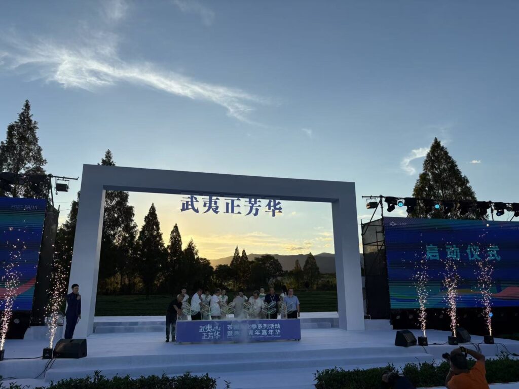 活動舞台是搭在一派翠綠的茶園中,在夕陽的餘暉下,以樂器演奏作為開場秀。武夷山的市屬企業三茶集團在活動中同步舉行了新茶飲首店推介。該首店以「溯源武夷茶+新式輕乳茶」為特色,打造健康低負擔的「輕盈好茶」,標誌著武夷茶產業在精深加工與現代消費場景拓展上的重要突破,隨後的文藝演出通過時尚藝術形式,生動呈現武夷生態人文之美。