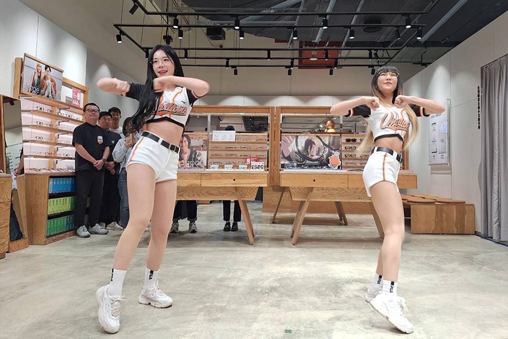 【記者吳玉惠/臺南報導】 JINS聽到了獅迷熱情的吶喊!繼台北小巨蛋店舉辦一日店長活動後,許多獅迷紛紛敲碗,希望能在南部近距離與統一獅 Uni Girls 啦啦隊員互動,為了南部的JINS愛用者、統一獅球迷,JINS特別在中秋連假第一天,邀請人氣超高的韓籍啦啦隊員Mimi趙娟週與台韓混血的Yovia擔任 JINS 新光三越台南小北門店一日店長,用兩位啦啦隊員賞心悅目的「統一贏戰」舞蹈,為中秋連假拉開序幕。