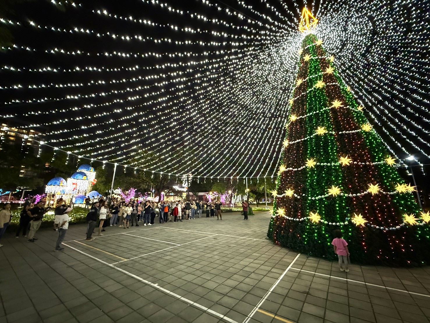 傳播處表示,今年規劃14組燈飾,其中包括3棵特色聖誕樹,分別是位在屏東公園的「聖誕派對」、「極光之心」及屏東火車站的「星願聖誕樹」,打造雙主燈外,並擴展燈飾範圍至周邊街道中華路、民權路等,每晚17時30分至22時亮燈,讓民眾沉浸在璀璨燈海中。