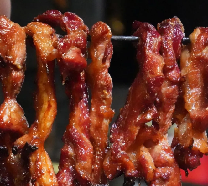 大赤坎明火叉燒燒排骨是斗門當地民間一種傳統美食,它既承傳了廣東叉燒的風味,又獨創了自身的醬料配方和加工工藝,以其特有的醬香和荔枝柴香聞名遐邇。
