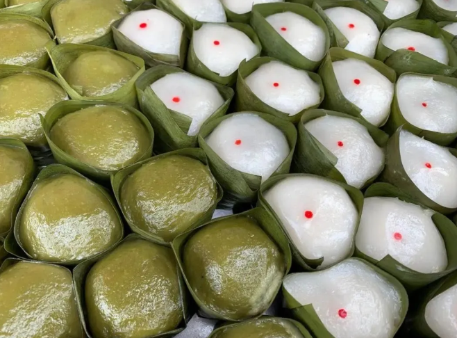 艾餅又稱“艾糍”,是白蕉鎮客家人的傳統食品,因主要輔料取自“艾草”而得名。蒸好的艾糍香氣四溢,欖葉和艾葉的清香相互交融,令人垂涎欲滴。