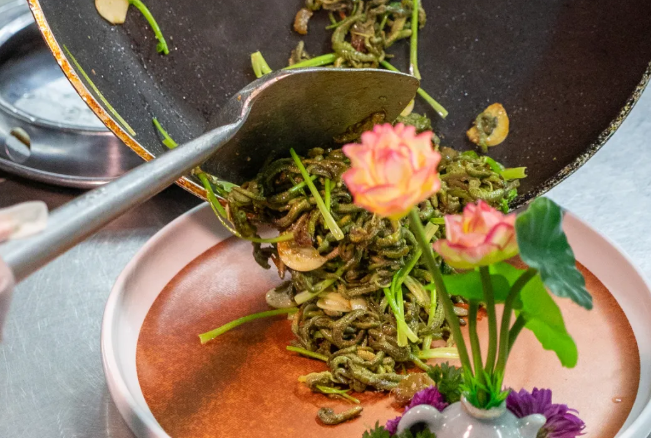 新鮮出鍋的炒禾蟲,濃郁的香氣實在撩人,輕輕夾起送入口中品嘗,外脆裏嫩不油不膩,令人停不下筷子。
