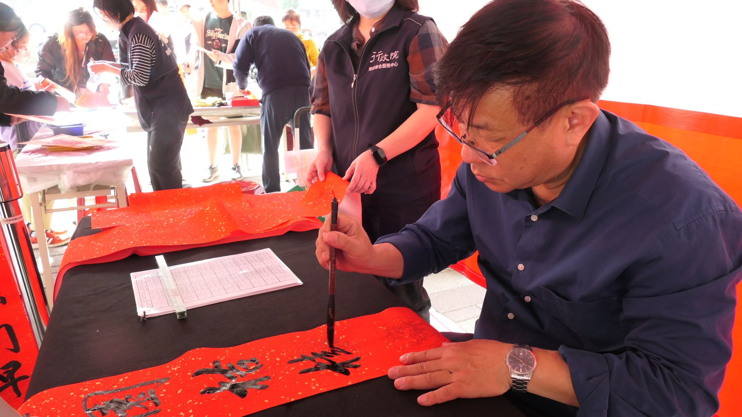 每年春節前夕,行政院南部聯合服務中心均舉辦名家現場揮毫贈春聯活動,今年已是連續第七年舉辦,並成為該中心最具代表性的年度活動之一。執行長許乃文表示,活動不僅保留傳統春聯書寫習俗的文化精義,更在形式上持續創新,引入客家剪紙、民俗吉祥節等傳統技藝元素,讓文化活動更貼近市民生活。