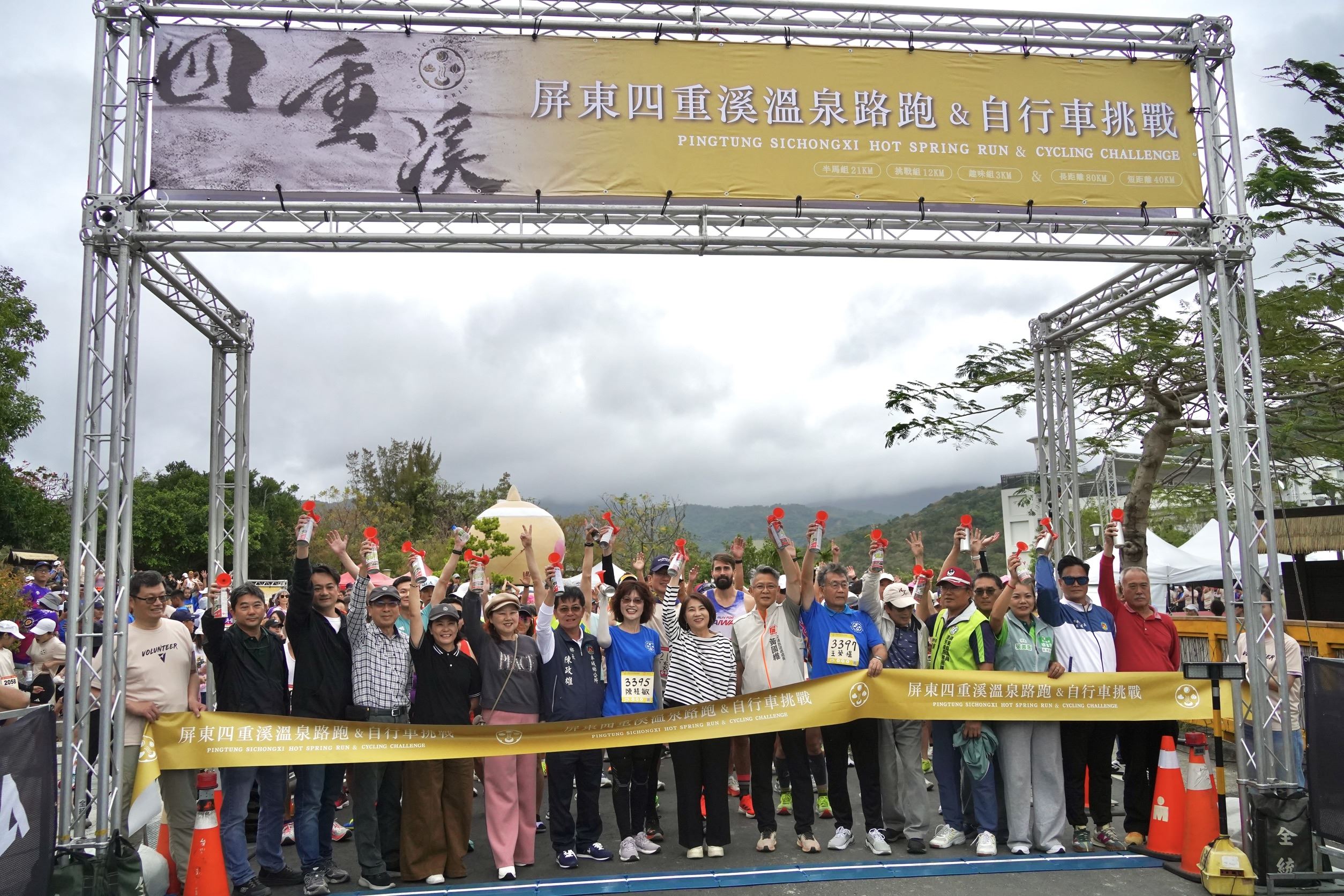【記者戴英薇/屏東報導】  「2026屏東四重溪溫泉路跑&自行車挑戰賽」於2月28日至3月1日在四重溪溫泉公園熱鬧登場,縣長周春米今(28)日到場與跑者們熱情互動,為賽事揭開序幕。縣府表示,為讓賽事形式更加多元,今年首度將自行車挑戰賽納入活動,歡迎全國車友把握機會,一同在冬日暖陽下熱血騎乘,感受浪漫又充滿能量的運動旅程。