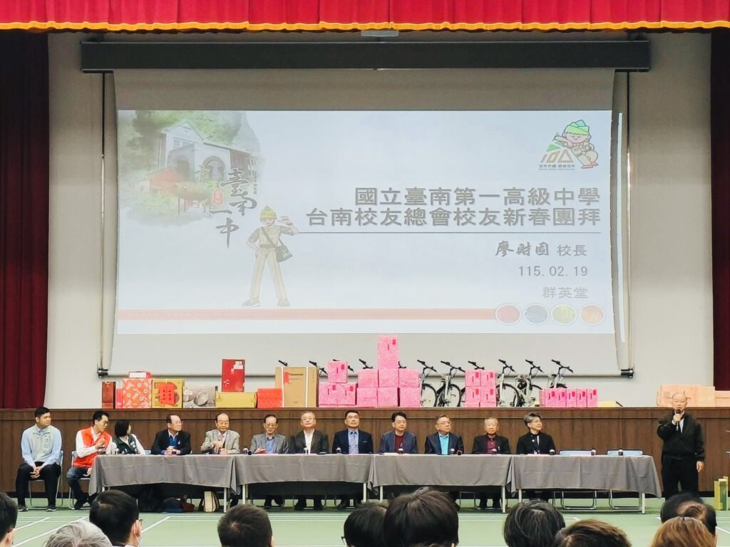 每年春節台南一中校友們最盛大的團拜活動,都會在大年初三的時候,所有的畢業校友、現任或退休師長以及關心台南一中校友會發展的好朋友們,都會齊聚在學校的禮堂,今年參與的人數也突破以往,包括資深校友吳榮彬董事長等超過700人以上的校友回到母校來團拜,把寒假中寧靜的校園,掀起了一波懷舊的熱潮,當中有高齡99歲的師長戴天賞老師,也帶領大家演唱民國前時期的日文校歌,歌聲嘹亮,相當感人,藉著校友彼此的團拜以及母校廖財固校長的校務報告,了解一下學校目前的發展,同時也讓好久不見的校友們彼此問候。