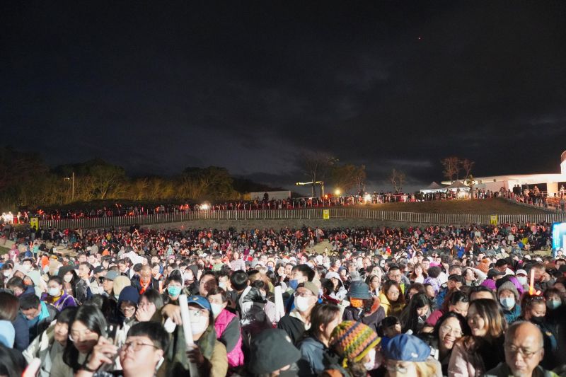 園區自下午起陸續湧入人潮,隨著夜幕降臨,在周縣長、各界代表與滿場觀眾見證下,共同宣布「恆春出火地質公園」正式啟用,在自然火光、環形水域與音樂交織的氛圍中,正式迎接這座嶄新場域,壓軸登場的動力火車接連獻唱多首經典歌曲,全場齊聲合唱,將開幕夜晚氣氛推向最高潮。