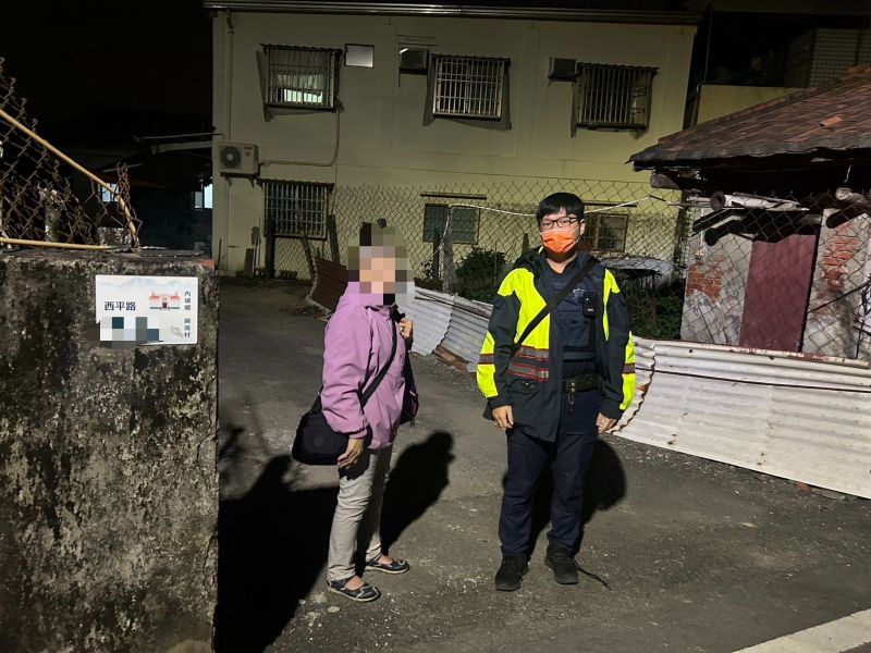 屏東縣政府警察局內埔分局內埔所警員林彥丞、徐敬堯,日前半夜11點多巡邏時,接獲民眾報案,在內埔鄉南寧路段有一老婦人需要協助,請警方到場幫忙。
