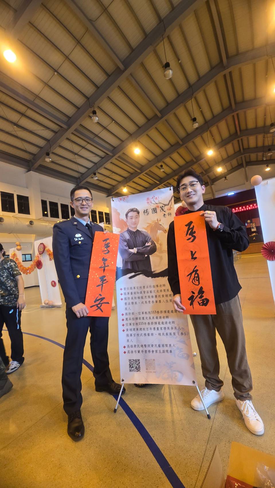活動現場的中正堂墨香四溢,前來領取春聯的官兵與家屬絡繹不絕。楊國茂老師及其團隊針對大家不同的新春願望,即席揮毫寫下如「福」、「馬年平安」以及展現部隊精神的特製對聯。家屬們紛紛表示,能在懇親會中親眼見到大師風采,並拿到手寫春聯回家張貼,感受到軍方極大的用心與溫暖。