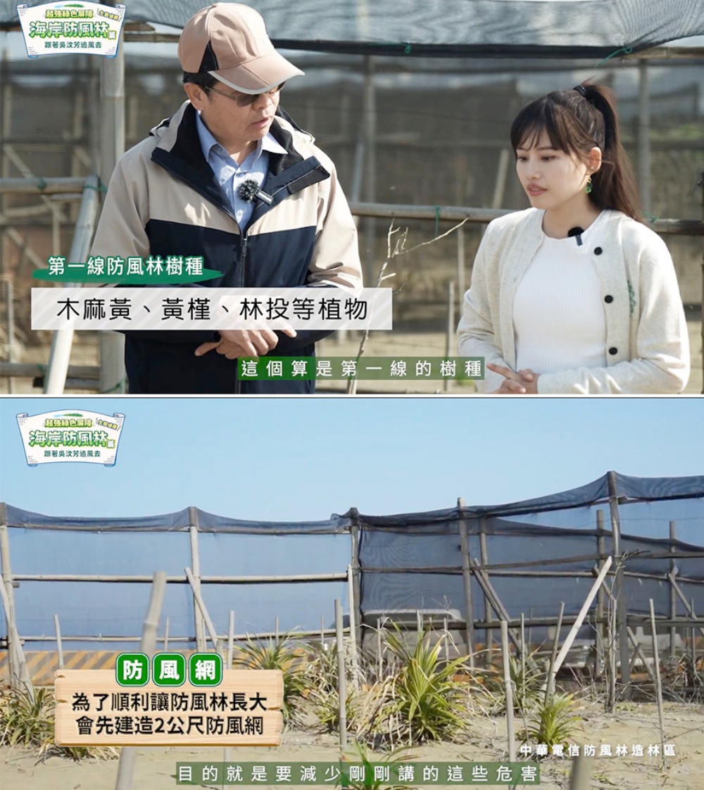 ▲台灣東北季風強大,防風林種植維護不易,初期需要2公尺高防風網幫助幼苗成長。(圖/翻攝自影片)