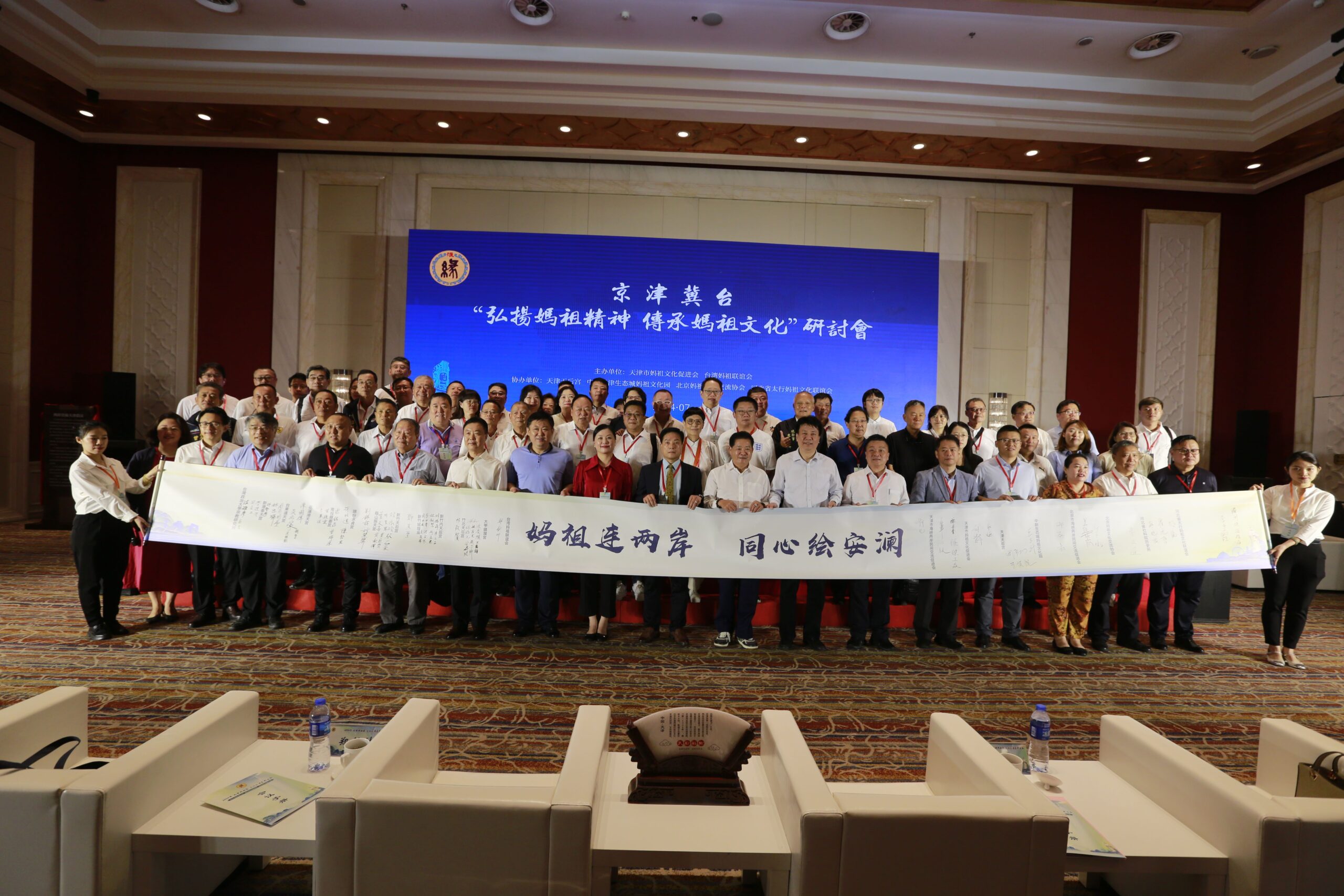 7月5日下午,以「傳承中華優秀傳統文化、續寫媽祖文化精神華章、增進兩岸同胞凝聚和認同」為主題的2024年「兩岸媽祖緣」文化交流系列活動在津啟動。京津冀各地方政府相關負責同志出席,臺灣媽祖聯誼會及京津冀媽祖宮廟負責人、媽祖專家學者和信眾代表等近100人參加活動。