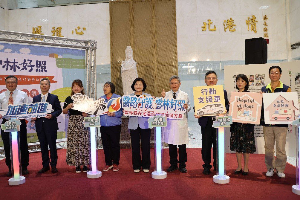 縣長張麗善表示,我們推出全台首創在宅急症照護體系,總共成立三支在宅急診照護團隊,不到一年之中,收案量已超越全國的兩倍,服務範圍涵蓋全縣。這要感謝雲林基督教醫院、臺大雲林分院,以及今天啟動的第3支團隊北港媽祖分院,補足沿海地區在宅醫療的服務。