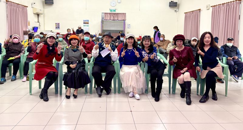 接續由歌手老師們輪番演唱一首又一首膾炙人口的經典老歌《一見鍾情》、《紫丁香》、《淡水河邊》、《南屏晚鐘》等,動人旋律在溫婉甜美嗓音詮釋,讓長輩們聽得陶醉!劉會長也精心設計穿插名人照片或著名生平機智問答,像是《拜訪春天》這首歌是由民歌歌手施孝榮所演唱,劉會長就趁機詢問長輩施孝榮是臺灣哪一族原住民?元阿姨立刻舉手搶答說:「排灣族」,劉老師驚訝的開玩笑回應:「難道妳跟他是同族族人嗎?這麼熟悉」,獲得全場哄堂大笑!接著劉會長又舉起一張名人照片,大夥兒齊聲說:「劉文正。」,只見劉會長又打趣地說著:「這是我年輕時的照片,因為我也姓劉。」再度引來滿堂笑聲,氣氛好歡樂!長輩們個個專心聆聽,努力搶答,氣氛高潮迭起。活動尾聲由劉會長及老師們帶來《可愛的玫瑰花》與現場長輩一同大合唱,在溫馨歡樂的歌聲中,期待下個月再相聚。