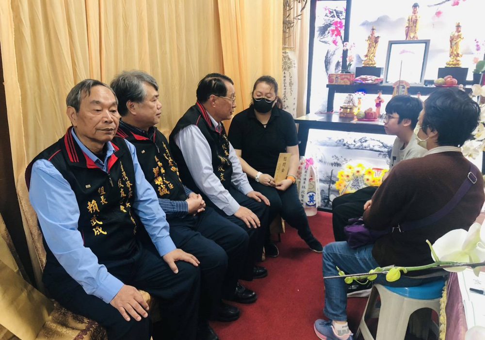 ▲警專校友總會副秘書長郭效文等人前往慰問家屬。(圖/警專校友總會提供)