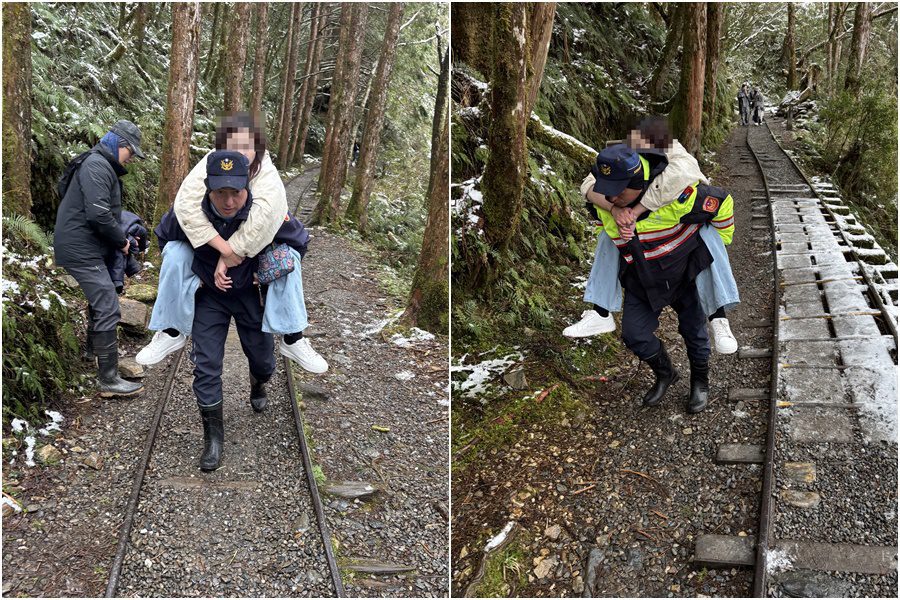 經初步檢視為左腳踝扭傷無法行走,經同意以揹負方式護送出步道,再交由救護車轉送醫院救治。三星分局提醒民眾,如遇天氣寒冷進入山區應注意保暖,步道如有結冰或積雪千萬要小心慢速通行,遇緊急情況請撥打110或119請求協助。