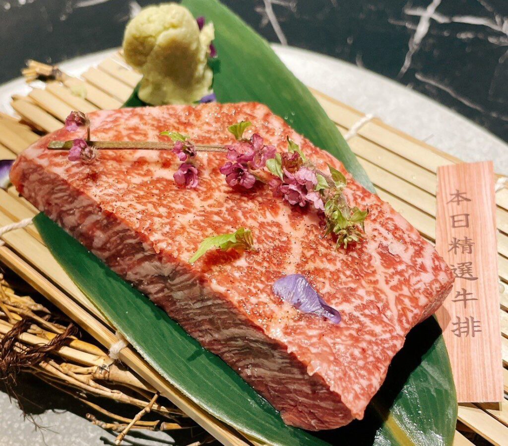 從肉品食材的選擇上可以看得出,不只非常關注肉的品質,更注重細節的呈現。以A5和牛臀芯牛排為例,選用位在腰部連接臀部之間的部位,就是想讓饕客吃到肉質軟嫩、肉香味迷人、油花又不會膩口的絕妙滋味。雙面直火烤出梅納反應,香氣撲鼻之際可先別急著滿足口腹之慾,建議烤完後可靜置30秒,讓表面熱度往內滲透,全方位昇華口感與風味。