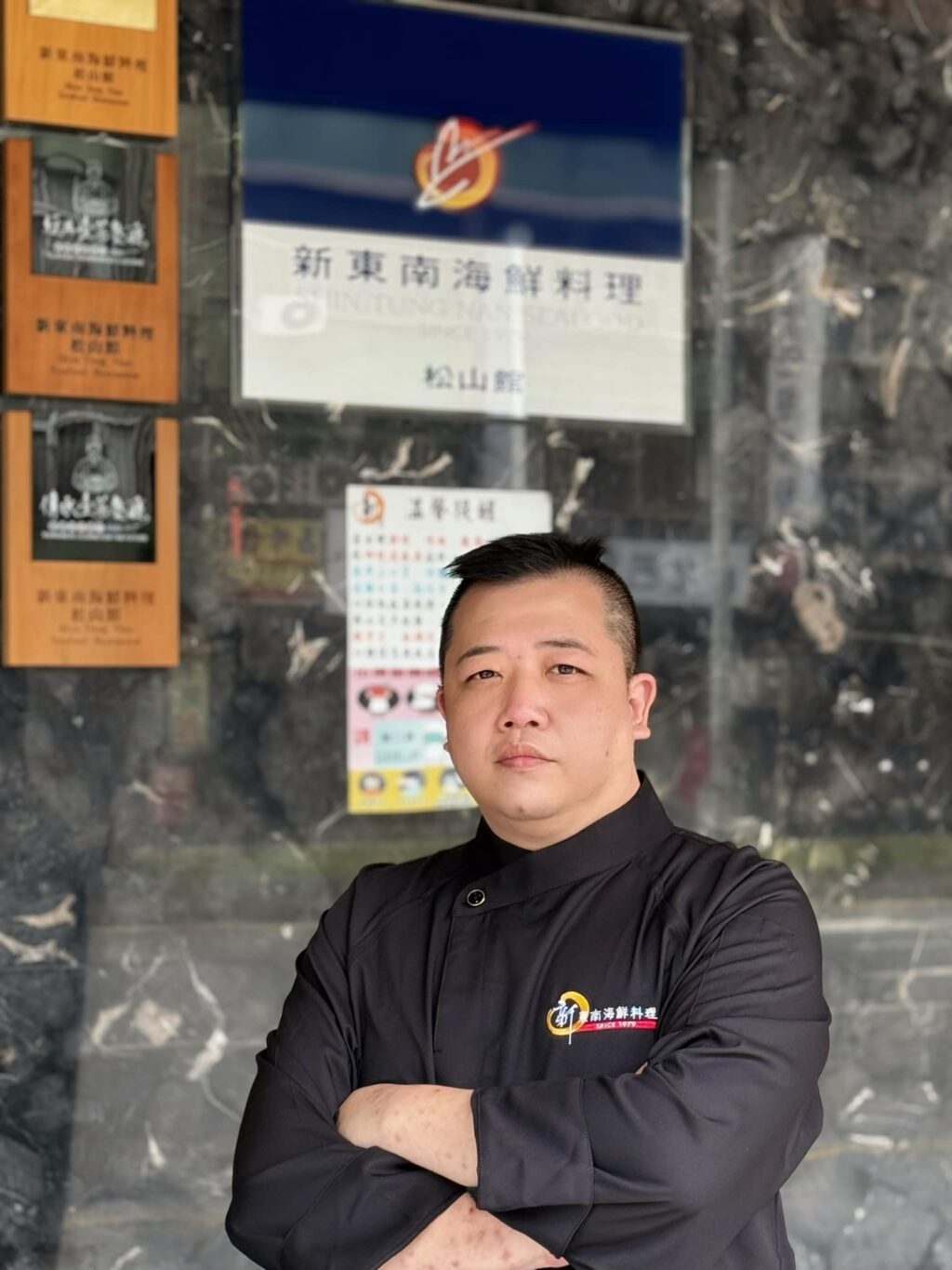 民國68年開業從南門市場商圈的路邊攤起家,迄今已然46年,汀洲路與松山車站兩店足以容納千人的海鮮餐廳。員工200人、食材成本高達52%,活脫脫就是個弄刀舞火的餐飲母市,靠著好食材與好口碑加上四大主廚的美味堆疊,讓新東南三個字就是海鮮的品質保證金字招牌,更締造員工8對以上的金玉良緣。松山店最年輕的行政總廚朱建宇便是其中的靈魂人物,可以把新鮮好食材把玩成饕餮喜愛的滋味,而前身是粵菜底的朱建宇特別感謝二代接班人黃老闆充分授權溝通暢通無比,造就新東南海鮮餐廳的傳奇。