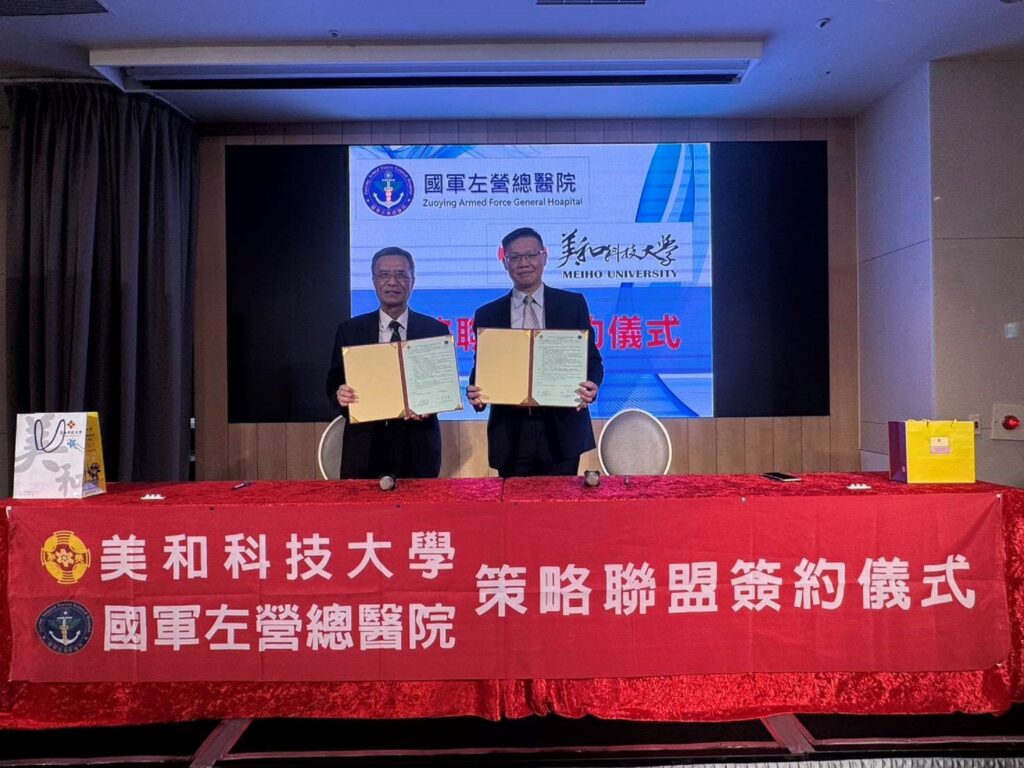 【記者戴英薇/內埔報導】 美和科技大學與國軍左營總醫院4月7日簽訂合作協議,雙方就醫護專業實習、學術交流、人才培育及健康照護資源共享等面向展開全方位合作。