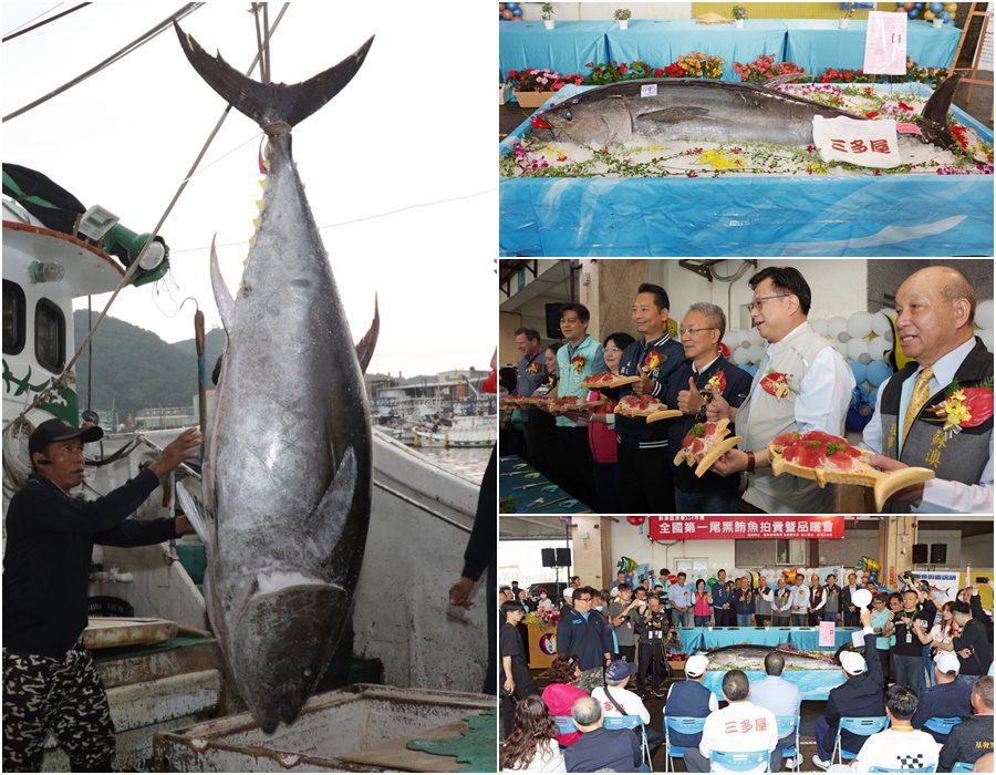 今年由蘇澳籍漁船「全昌隆168號」捕獲總重216公斤的全國第一黑鮪魚,10日早上在南方澳第三魚貨拍賣場舉行拍賣會,經過承銷人一陣喊價競標後,由三多屋以每公斤7700元得標,總拍賣金額166萬3200元!