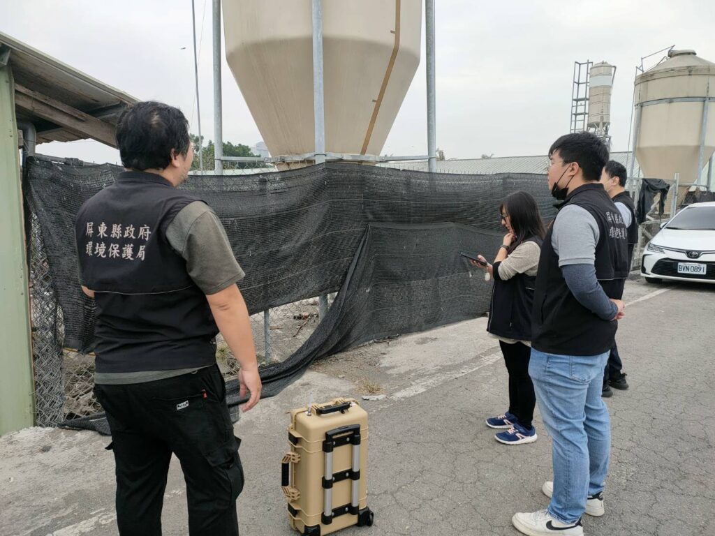 ▲查獲養雞場任意堆置雞糞造成異味運用臭異味偵測儀,預先檢測畜牧異味以作為異味採樣之參考依據。(圖/屏東縣政府環境保護局)