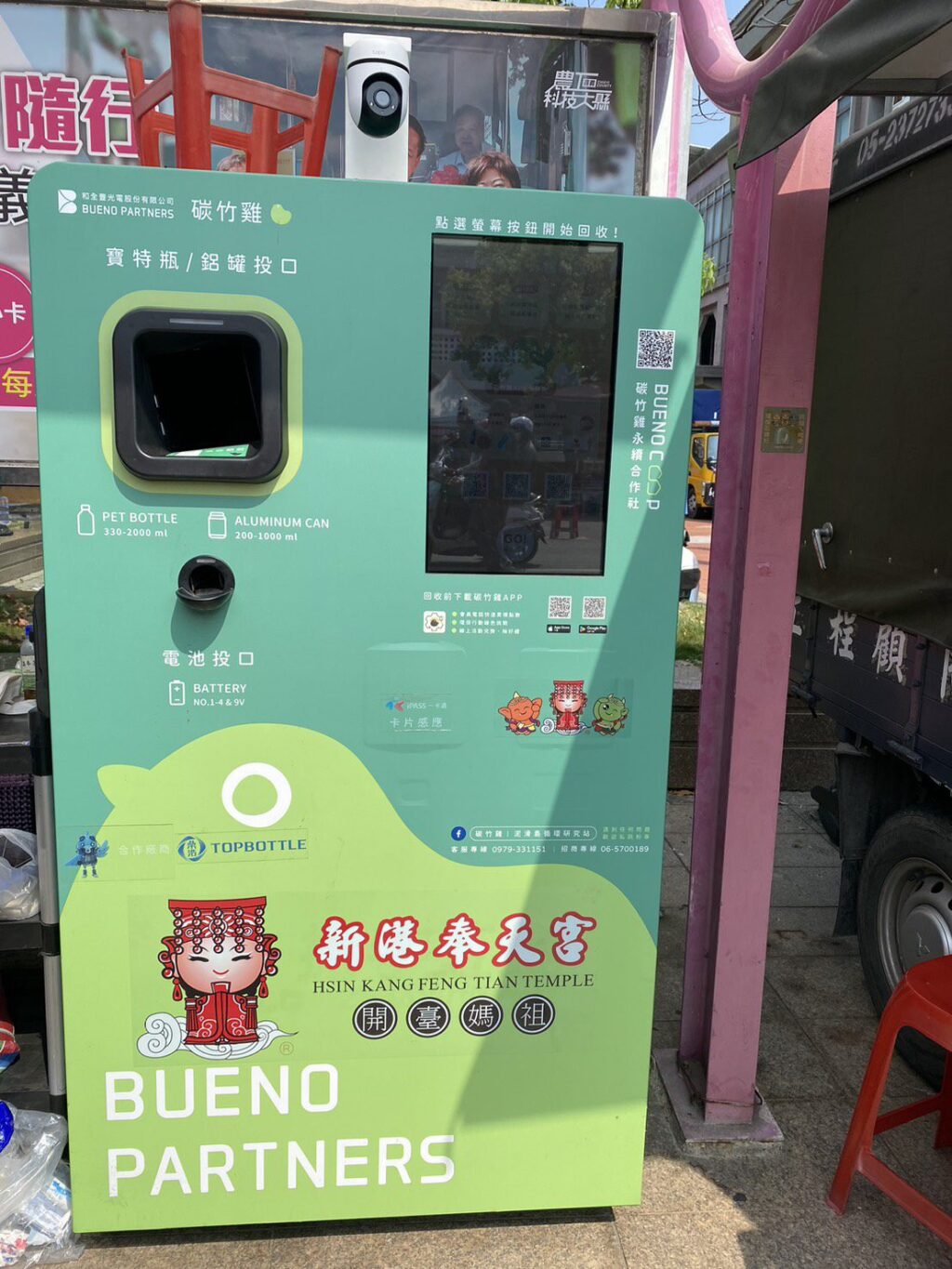 ▲大甲媽祖至新港奉天宮遶境結合環保,引進DGM智能廢食用油回收機及智慧回收機服務。(圖/嘉義縣政府提供)