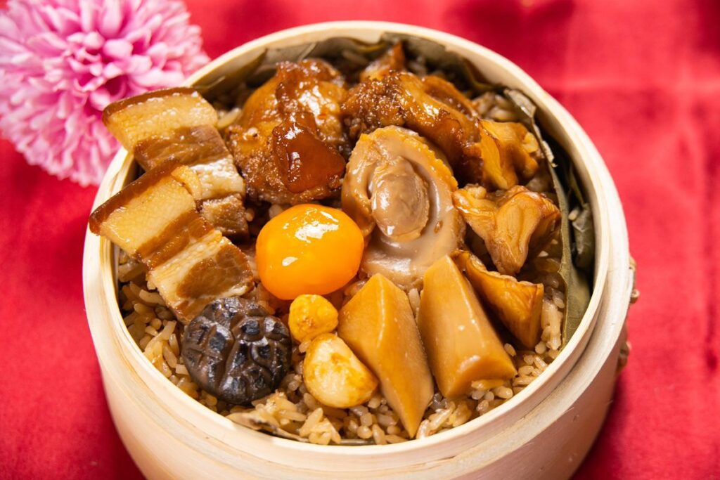 這款禮袋精心收錄兩款重量級美味,包括以整顆鮑魚與黑毛豬虎掌為主角的「冠軍虎掌鮑魚粽」,鮑魚以蠔油慢燉入味,虎掌則經古法先炸後滷,Q彈軟嫩的口感令人驚艷,佐以丹麥皇冠梅花豬肉、雲林甜龍筍、杏鮑菇、鈕扣菇等豐富配料,整體香氣四溢又不油膩。