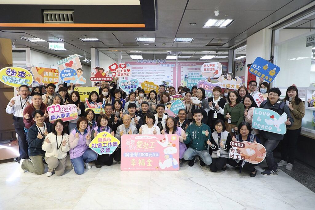 今(2)日適逢台灣社工日,嘉義市政府社會處特別規劃一系列精彩活動,透過主題策展「社會安定的重要推手─社會工作員(師)」,以靜態策展與宣導影片的方式,讓民眾可以更認識社工專業和日常,市長黃敏惠更代表市府頒發加碼「1000元幸福金」給嘉義市全體社工人員,由嘉義市社會工作師公會代表接受,向辛勞付出的社工夥伴致上最深的感謝,並由衷祝福「社工日快樂」!