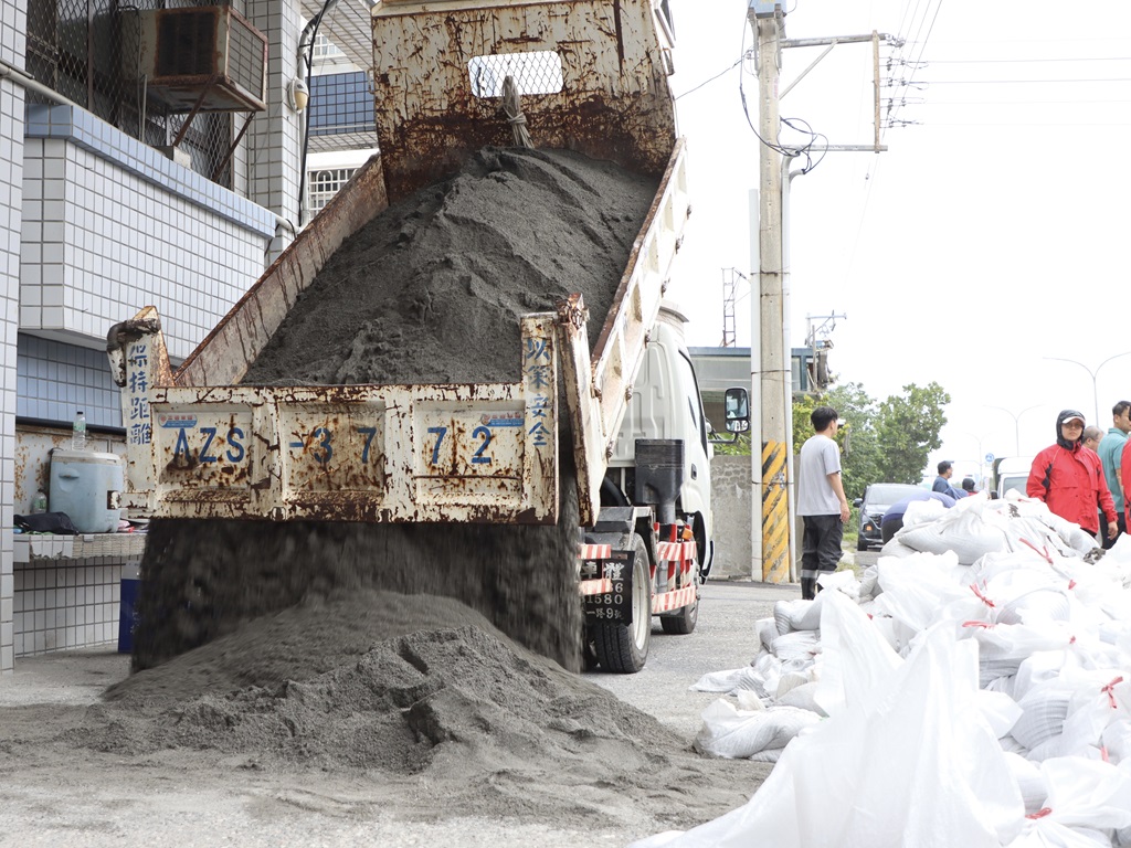 接著,陳市長前往清潔隊確認沙包發放狀況。陳市長表示,原預備六千包沙包,臨時追加到七千包,全力滿足防颱需求,並提醒民眾在沙包使用後,可將沙包歸還市公所,勿隨意棄置,造成水溝堵塞問題。