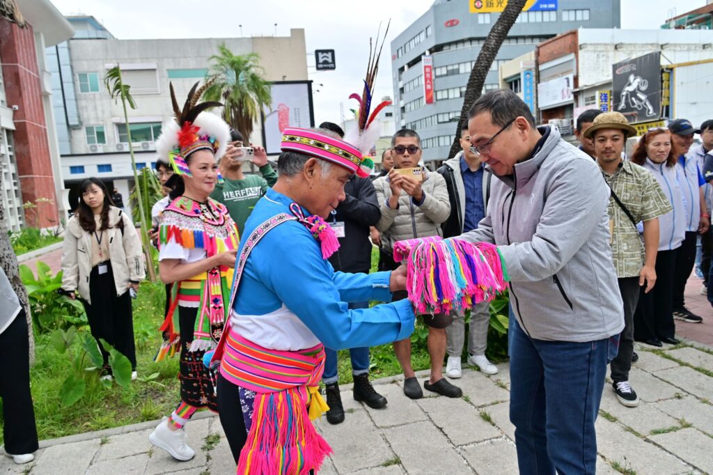 侯友宜與新北市府團隊首站參訪了臺東表演藝術創生基地「就藝會」,饒慶鈴縣長及縣府團隊以阿美族傳統儀式,歡迎侯友宜加入大馬蘭部落家族,並致贈情人袋及花環,饒慶鈴表示,舊議會為著名建築師呂阿玉設計,103年登錄為歷史建築,縣府近年透過調查研究與修復計畫,於112年完成修繕,打造具有臺東特色的藝文空間,展現對於文化資產保存與活化的重視。未來希望與新北市政府共同策劃文化活動、加強藝術家的交流與作品展覽,讓兩地的表演藝術團隊擁有更多發展機會,也歡迎新北藝術家到此駐村創作。