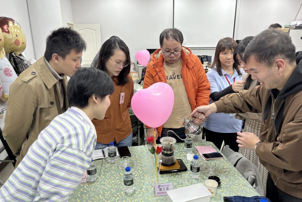 臺北玫瑰園為北臺灣最大的地植玫瑰園,擁有來自世界各地的玫瑰品種,每到3月玫瑰季,各種玫瑰花爭相綻放,吸引許多愛花民眾前來遊玩。此次活動結合臺北玫瑰展,安排參加者一同在浪漫的玫瑰花海裡賞花漫遊,並規劃手沖咖啡及浮游花瓶等不同的主題活動,讓參加者不僅能享受春日的美景,也能體驗手作的樂趣。參加者們在專業咖啡師的指導下,親手沖泡出香濃的咖啡,手沖咖啡的濃郁香氣與花朵的清新氣息相互交織,創造出一種溫暖又放鬆的感官享受,讓參加者可以輕鬆自在的氛圍中互動交流,了解彼此的興趣或生活,進而開啟一段新的愛情旅程。