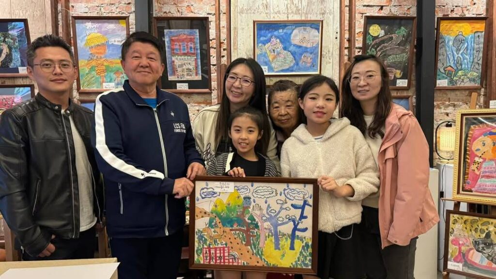 指導老師蕭美惠也分享,天真慧黠的貝貝四年多前開始學畫,只要有一張紙、一枝筆,隨手一畫就是一個畫面,即使經歷疫情也沒有停止學習與創作。貝貝從小就立志當畫家,目前甚至已經開始創作LINE貼圖,展現她無限的創意與熱情。她的作品色彩繽紛、充滿童趣,彷彿帶領觀者走進夢幻般的童話世界。在喧囂嘈雜的生活中,貝貝的畫作能讓人返璞歸真,透過她的眼睛,感受這個世界的純真與美好,進入一個充滿童真與創意的藝想世界。