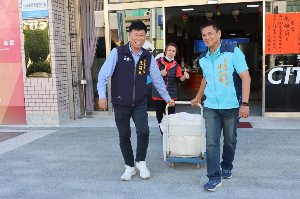 【記者 陳法水/台東 報導】在市長陳銘風和市民代表林志龍的邀請下,華邦營造有限公司、昶旺營造股份有限公司、龍形企業股份有限公司、捷可企業有限公司、新瑞成有限公司以及黃秀麗、黃秀月…等共7個單位及個人,捐贈了臺東市每個文健站各200斤白米,共計3400斤,還有關廟麵、沙拉油…等民生物資,以支持文健站持續為原住民長輩提供交流和活動的場所。