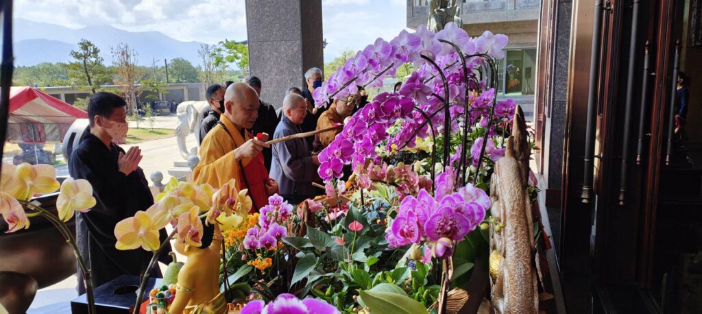 ▲佛恩寺住持如嵩法師主持浴佛法會。(圖/黃崇能)