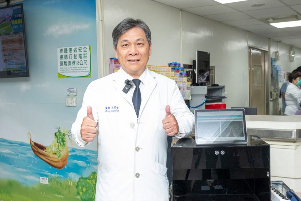 ▲林慶雄副院長表示,為提升洗手品質,除神秘客稽查外,更導入智慧螢光洗手檢測。(圖/彰基提供)