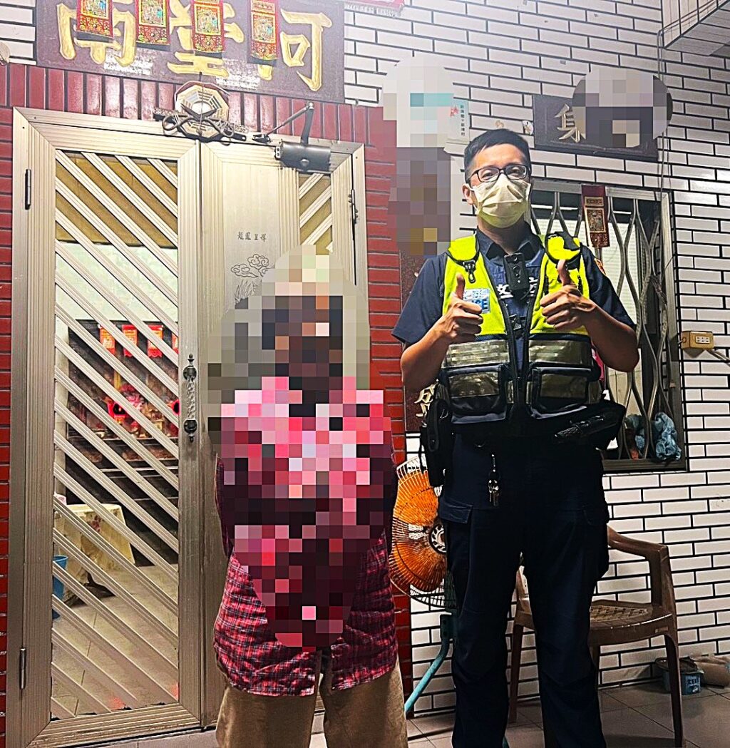 ▼請求警方幫忙護送阿嬤回家,隨後唐員等2人護送張姓阿嬤回家,員警助民善舉,深獲家屬感激。(圖/屏東縣政府警察局內埔分局)