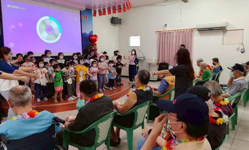 慶生活動也邀請榮家教保中心可愛的小娃兒們共襄盛舉,戴著蛋糕帽的兩位小壽星陪伴慶生,為現場增添不少童趣與歡樂。在教保老師的帶領下,小朋友們還帶來精采的「嘟嘟寶貝」與「動物體操」音樂律動,舉手投足充滿稚嫩天真,有時不小心出錯吐舌頭的憨憨模樣逗得在場長輩們笑聲連連。