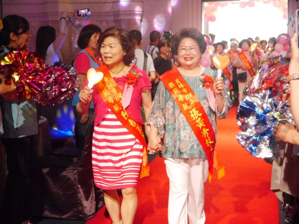 ▲到場的每位模範母親皆在家人陪伴下,逐一上台接受表揚並共同合影留念,場面溫馨感人。(圖/記者蕭麗鳳攝)