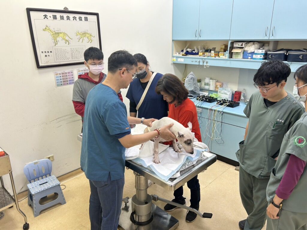▲嘉義縣家畜疾病防治所積極救治因車禍導致下半身癱瘓的牛頭㹴「小美」。(圖/嘉義縣政府提供)