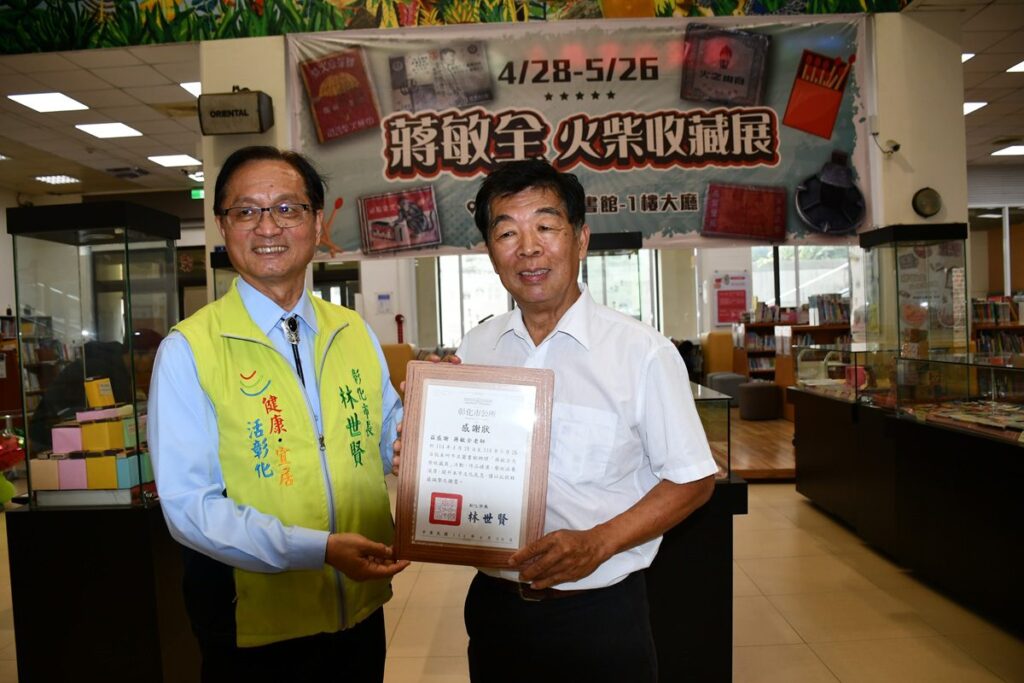 ▲「蔣敏全火柴收藏展」自4月28日至5月26日,在彰化市立圖書館一樓大廳展出。(圖/記者蕭麗鳳攝)