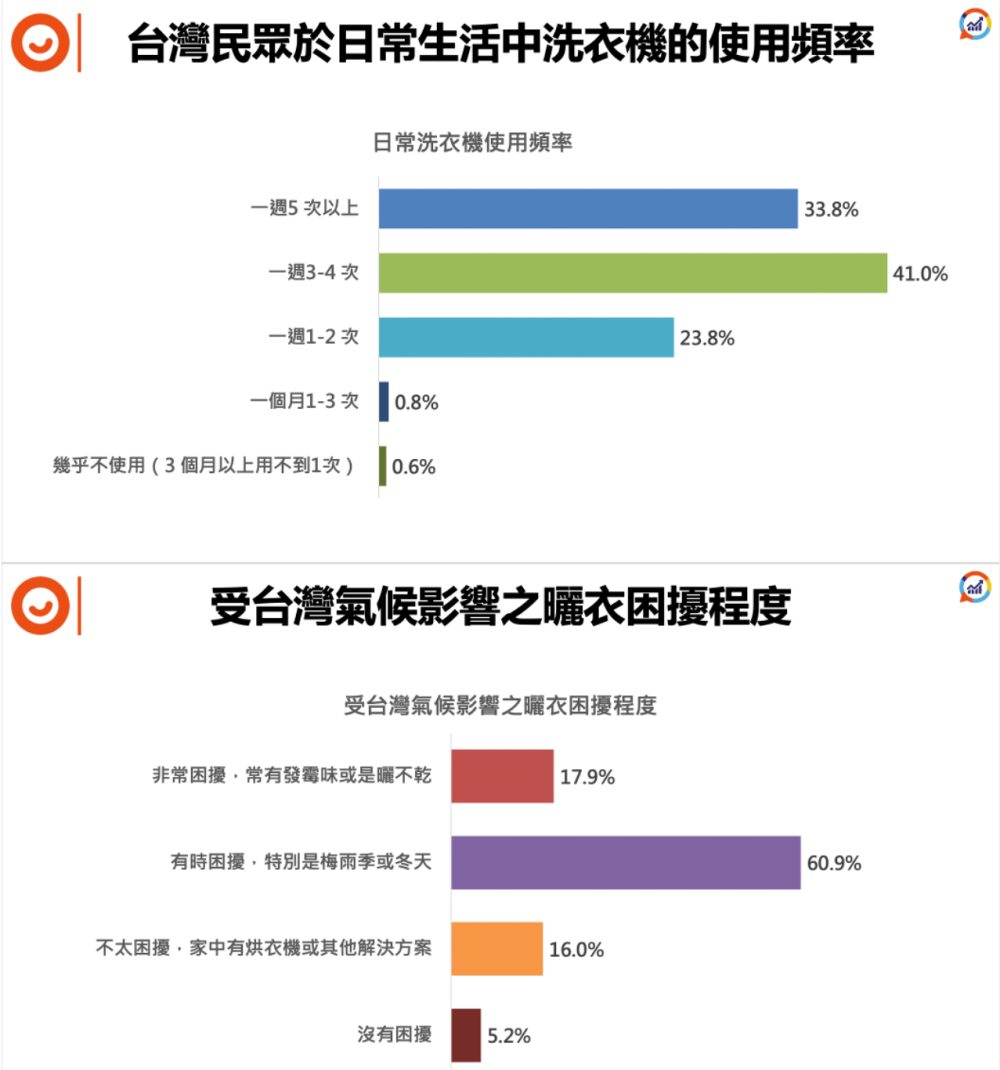 台灣氣候潮濕、晾衣空間有限,衣服洗完卻曬不乾、產生悶味或發霉的困擾,已成多數家庭的日常。根據ETtoday民調雲的《2025年洗衣機使用與偏好調查》調查顯示,有60.9%的受訪者表示「有時困擾,尤其是梅雨季或冬天」,另有17.9%表示「非常困擾」,顯示全台近8成民眾對衣物曬不乾的問題有感,也希望能藉由洗衣機的功能獲得改善。