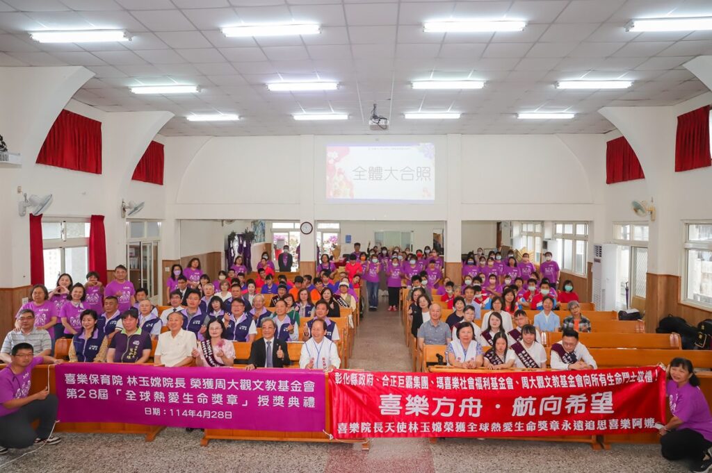 瑪喜樂社會福利基金會執行長暨喜樂保育院院長林玉嫦女士,榮獲第28屆「全球熱愛生命獎章」,並於28日由周大觀文教基金會與合正巨霸集團總裁蕭義明代表授獎,表彰她一生以堅韌與愛心回應生命挑戰,持續為身心障礙者帶來希望與尊嚴。彰化縣政府也特別由社會處身心障礙福利科陳奎林科長出席,代表縣長王惠美向林院長致賀,肯定她長年深耕弱勢服務、為提升身心障礙者福祉所做出的卓越貢獻。